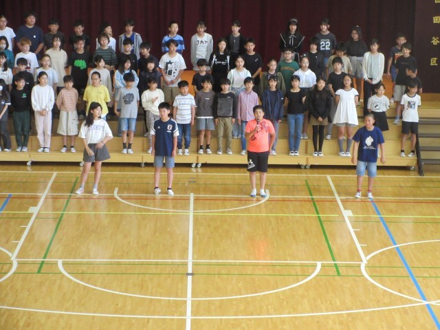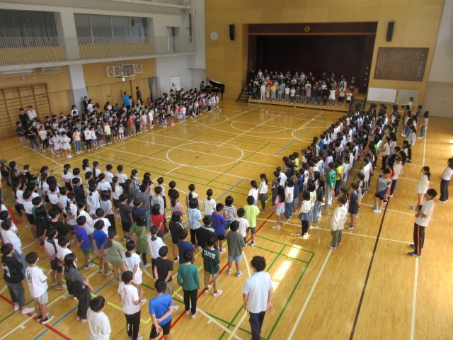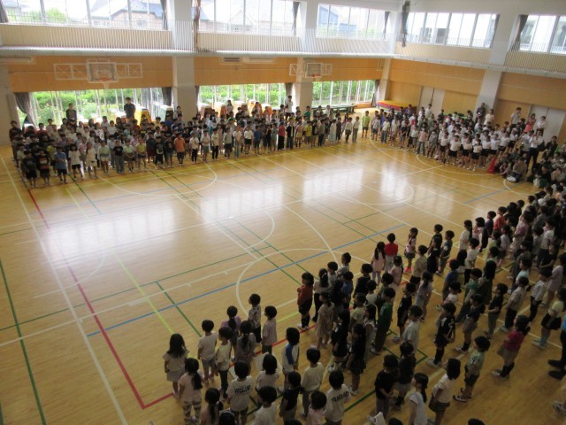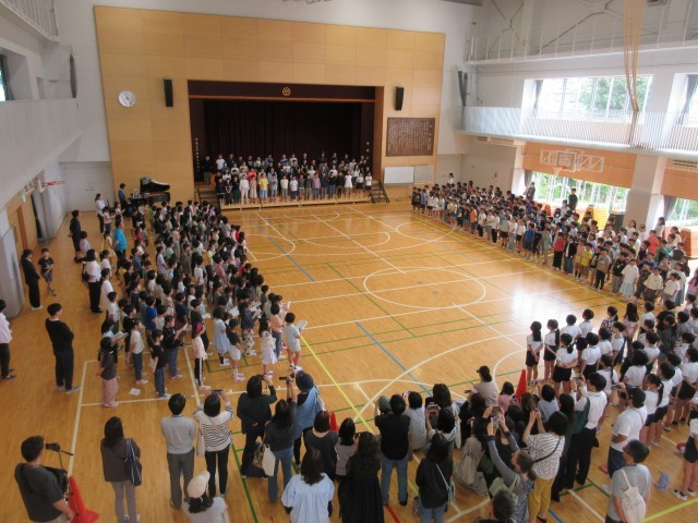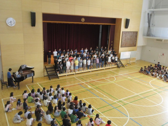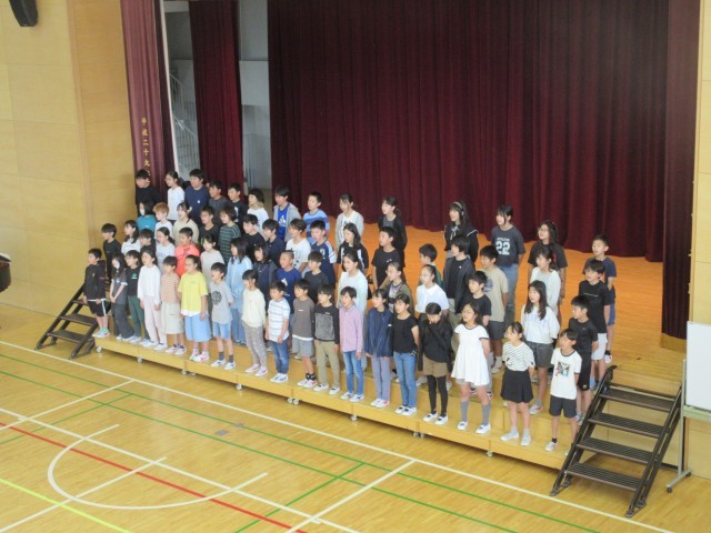 5月29日、朝の活動時間に音楽朝会を行いました。発表学年として6年生が「翼をください」を体育館中に大きくきれいな歌声を響かせました。その後で「気球にのってどこまでも」を全校児童で元気よく歌いました。