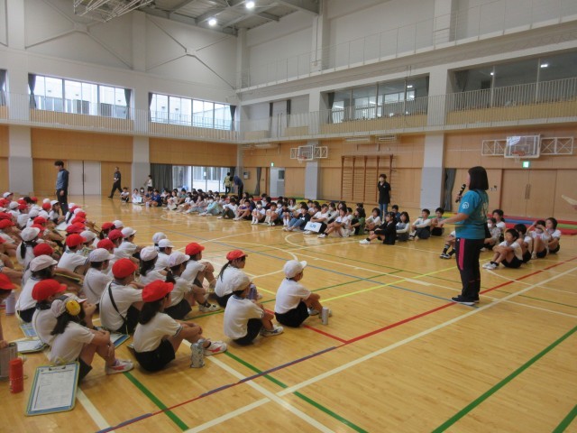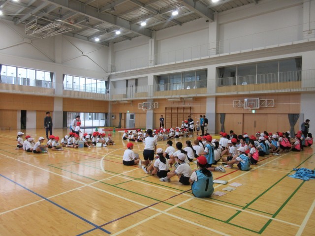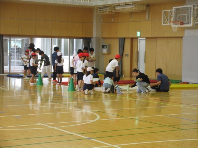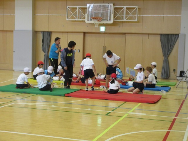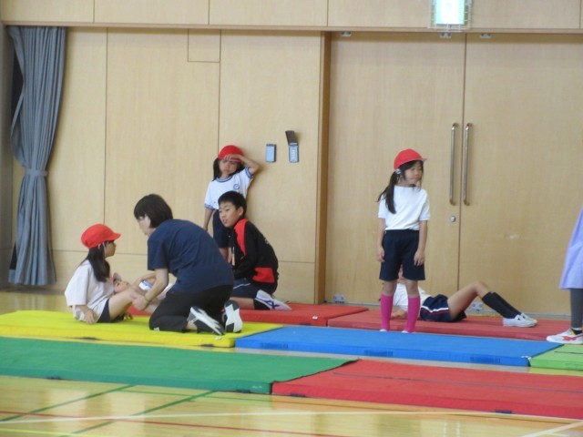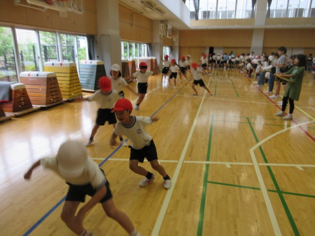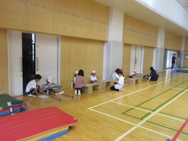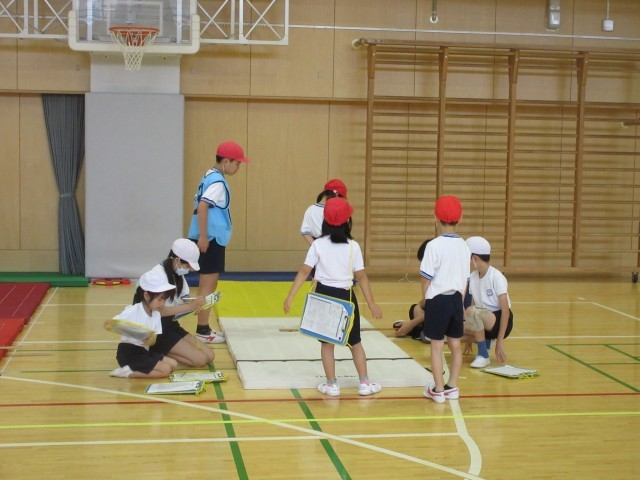 6月3日、子どもたちが自分の体力や運動能力の状況を把握するために体力テストに取り組みました。6年生が1年生、5年生が2年生のお世話をしながら立ち幅跳び、反復横跳び、長座体前屈、上体起こしなどの測定を行いました。上級生が下級生の面倒を見ながら速やかに取り組みました。雨のためソフトボール投げは後日行う予定です。