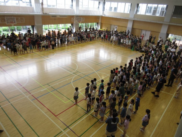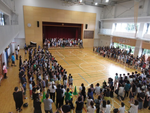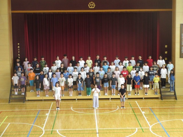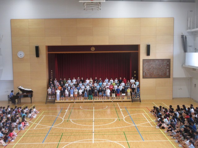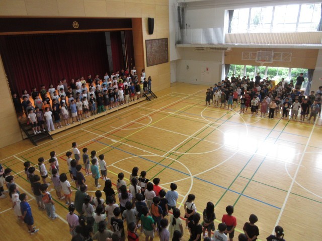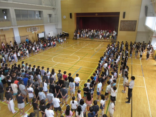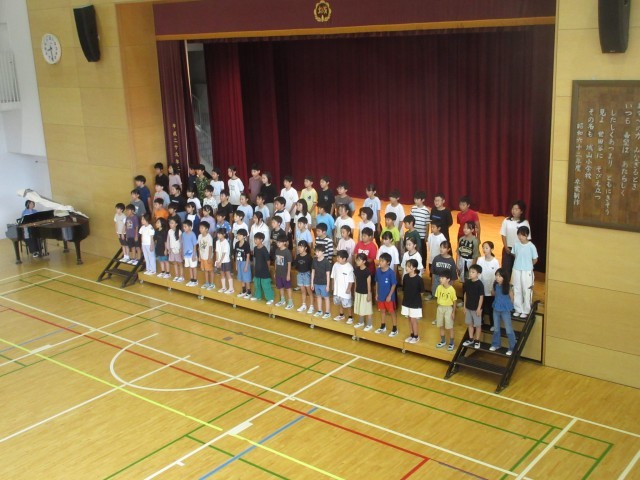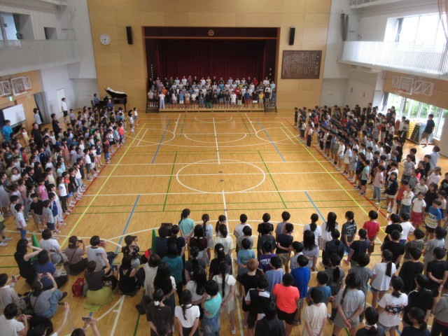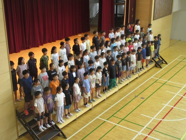 6月26日、朝の活動時間に音楽朝会を行い5年生が「いつでもあの海は」を発表しました。全員合唱は「ドレミの歌」で全校児童が楽しみながら大きな歌声を体育館に響かせました。