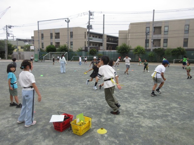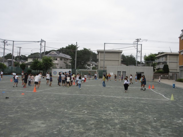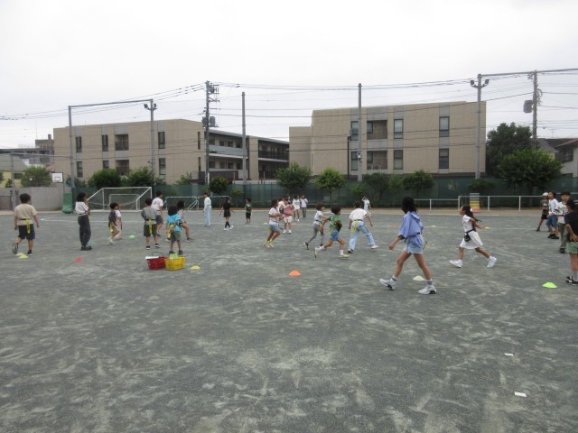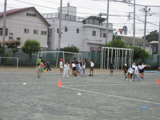 7月11日、1~6年生までの異学年集団を18グループ作り、6年生が中心になって遊びの内容を考えて取り組む縦割り班活動(ともあそび)を行いました。校庭では子どもたちが「ドッジボール」「しっぽとり」「鬼ごっこ」などで楽しく遊ぶ姿が見られました。
