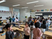 6年生を送る会(運営代表委員、縦割り班のメッセージカード渡し、6年生から記念品の贈呈)