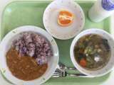 献立 れんこんのキーマカレー 七草スープ はれひめ 牛乳 にんにく(青森) し...