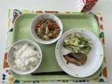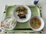 献立 ごはん かきたま汁 さばのみそ煮 青のりポテト ジョア しょうが(高知)...