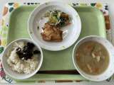 献立 ご飯 石狩汁 ザンギ 和風ナムル 昆布の佃煮 牛乳 鶏肉(岩手) 鮭(北...