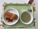 献立 カレーサンド 小松菜のポタージュ いちご 牛乳 いちご(栃木) 豚肉(茨...