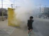 火災を想定した避難訓練にともない全校児童を代表して3年生が発煙車による「煙体験」...