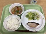 献立 ・ごはん ・ぶりのみそ照り焼き ・シャキシャキ野菜 ・根菜の煮物 ・牛乳