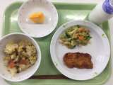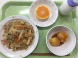 献立 あんかけ焼きそば じゃが芋餅 みかん 牛乳 みかん(愛媛) ぶた肉(埼玉...