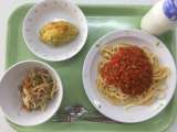 献立 スパゲティミートソース もやしサラダ スィートポテト 牛乳 さつま芋(千...