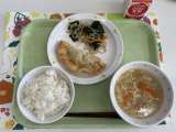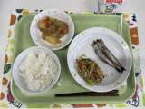 献立 ごはん 焼きししゃも 野菜のごま酢和え 根菜のそぼろ煮 牛乳 小松菜(東...