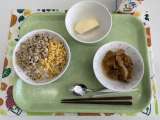 献立 目鯛のそぼろご飯 大根のべっこう煮 りんご(とき) 牛乳 米(山形) ...