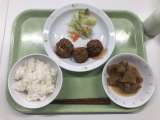 献立 ごはん 飛び魚のミートボール 一塩野菜 大根のべっこう煮 牛乳 飛び魚(...