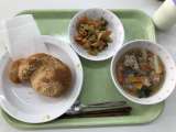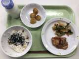 献立 黄な粉揚げパン 肉団子のスープ 野菜のコチジャンだれ 牛乳 しょうが(高...