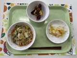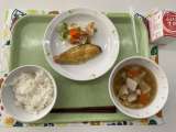 献立 ごはん 鮭の黄金焼き ひとしお野菜 のっぺい汁 牛乳 鶏肉(岩手) しょ...