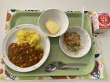 献立 豆カレー ごぼうサラダ りんご 牛乳 米(山形) りんご(長野) にんに...