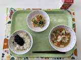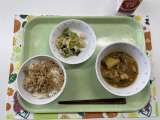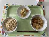 献立 七分付ごはん おからそぼろ じゃが芋の筑前煮 白菜のごまだれサラダ 牛乳 ...