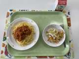 献立 スパゲティミートソース 焼きポテトサラダ 牛乳 豚肉(秋田) ベーコン(...