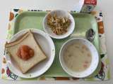 献立 食パン 手作りりんごジャム じゃがいものポタージュ もやしサラダ 牛乳 ...