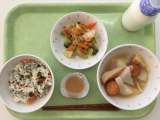 献立 里芋ごはん しいらのフリッター ごぼうサラダ(カムカムメニュー) はやか ...