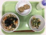 献立 しっぽくうどん みそドレサラダ 青のりポテト 牛乳 鶏肉(岩手) 生揚げ...