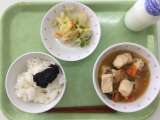 献立 ごはん のりの佃煮 肉豆腐 白菜のサラダ 牛乳 ぶた肉(埼玉) 豆腐(大...