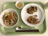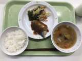 献立 ごはん さわらのおろしだれ かみかみわかめサラダ さつま汁 牛乳 とり肉...
