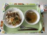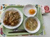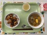献立 しいらの揚げ煮丼 かぼちゃ団子のスープ ゆずゼリー 牛乳 米(山形) し...