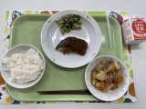 献立 ごはん 鯖のピリ辛焼き じゃが芋の甘辛煮 呉汁 牛乳 米(山形) にんに...