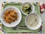 献立 チキンライス 白菜のクリーム煮 ブロッコリーのみそドレサラダ ジョア 米...