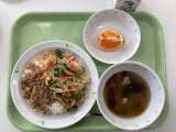 献立 ・ビビンバ ・わかめとじゃがいものスープ ・不知火(デコポン) ・牛乳