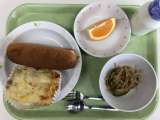 献立 米粉パン ポテトグラタン 野菜のコチジャンだれ 果物 牛乳 玉ねぎ(北海...