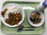 献立 カレーライス 福神漬け こんにゃくサラダ 牛乳 ぶた肉(埼玉) にんにく...