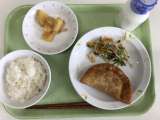 献立 ごはん ジャンボ餃子 塩ナムル じゃが芋の甘辛煮 牛乳 米(山形) ぶた...