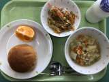 献立 ごはん おからコロッケ 茹で野菜 みそ汁 牛乳 米(山形) 豚肉(埼玉)...