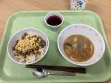 献立 ・飛び魚そぼろごはん ・豚汁 ・ぶどうゼリー ・牛乳