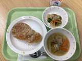 献立 ・白ごま揚げパン ・肉だんごとキャベツのスープ ・こんにゃくサラダ ・牛乳