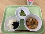 献立 ・七分づきごはん ・ひじきふりかけ ・肉じゃが ・ピリ辛きゅうり ・牛乳