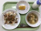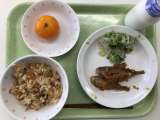 献立 こぎつねごはん 小あじの南蛮漬け 野菜のしそ和え 冷凍みかん 牛乳 米(...