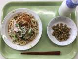 献立 冷やし中華 ポリポリ青のり大豆 牛乳 しょうが(高知) にんじん、きゅう...