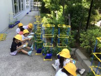 生活科の学習で育てているアサガオの観察を行いました。午後、日陰になって涼しくな...