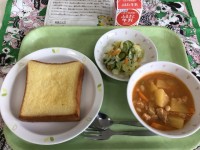 献立はちみつレモントースト牛乳ビーンズシチューフレンチサラダ