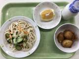 献立 冷やしわかめうどん せいだのたまじ 河内晩柑 牛乳 とりにく(岩手) き...