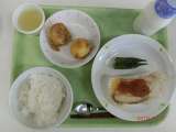 献立 ごはん 鯖のおろしだれ 粉ふき芋 かきたま汁 牛乳 鶏肉(岩手) しょう...