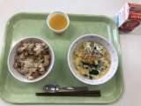 【献立】 かつおの混ぜご飯 かきたま汁 黄桃ゼリー 牛乳 【材料】 米(山形)...