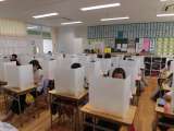 給食時の飛沫による感染予防のため、パーテーションを使っています。 ニュースでは連...