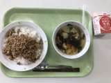 【献立】 目鯛のそぼろご飯 わかめスープ 牛乳 【材料】 米(山形) 目鯛ミン...