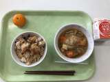 【献立】 ごはん ふりかけ 肉じゃが 冷凍みかん 牛乳 ※コロナ感染症予防に注意...