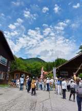 夕方になって少し涼しくなりました。宿について開園式を行います。みんな元気です。