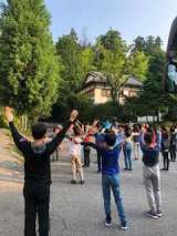 無事宿舎に到着し、宿舎前で開室式を行いました。入浴と夕食の後に、日光彫り体験を行...