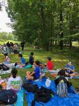暑いながらも爽やかな風の中、緑陰昼食のだいや川公園です。